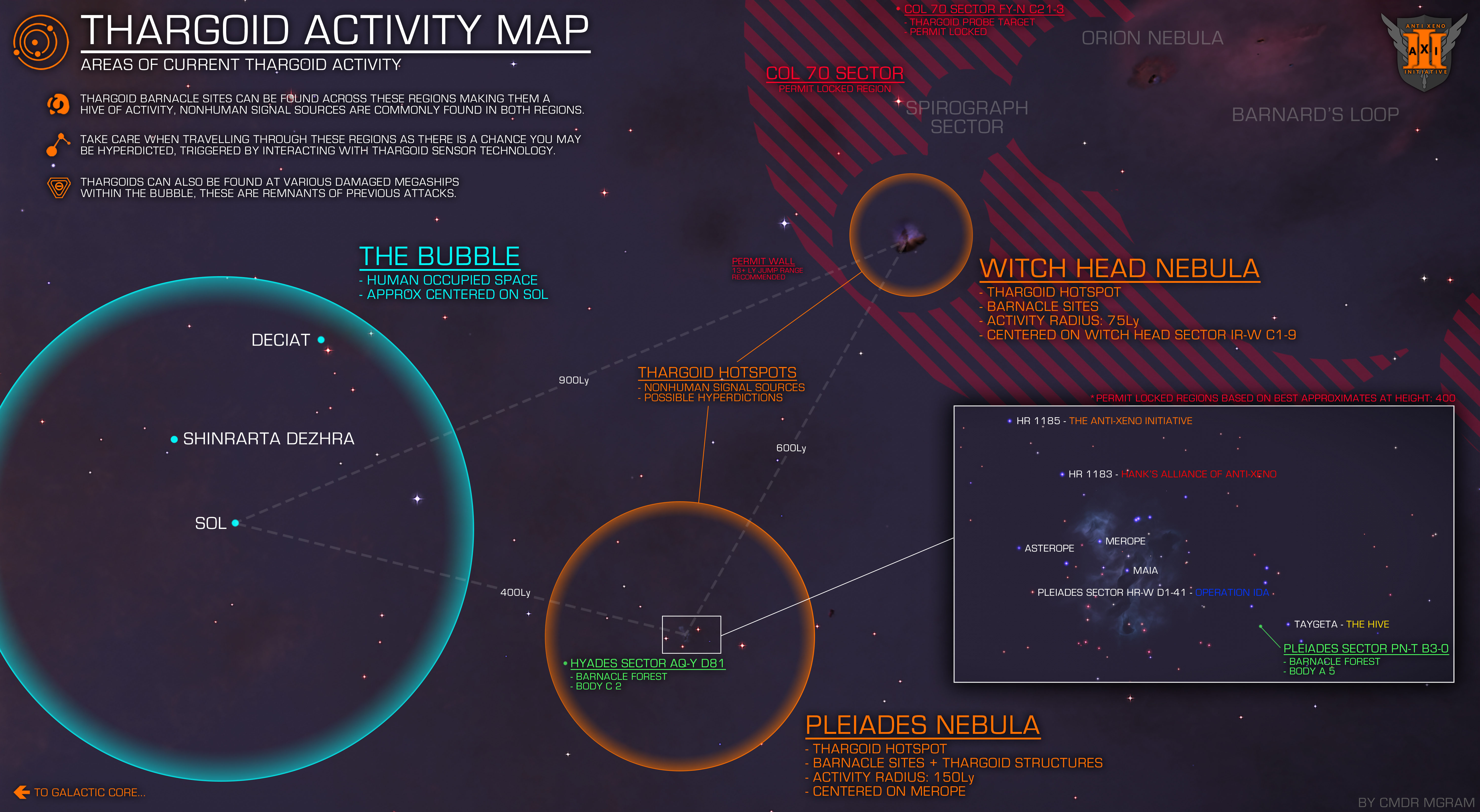 Take note - hyperdictions will happen in and around these regions, although they will not be hostile unless you’re carrying Thargoid cargo.